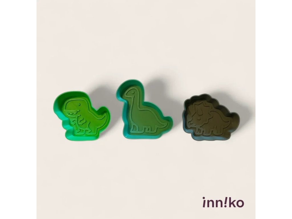 Tři bábovičky do kinetického písku s motivem dinosaurů pro malé paleontology. Ideální pro smyslové hraní, tvoření a rozvoj jemné motoriky.
