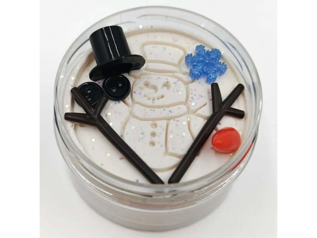 Zimní Mamolína s tématem stavění sněhuláka. Měkká, voňavá a bezpečná modelína pro děti, ideální pro zimní tvoření a smyslovou hru.