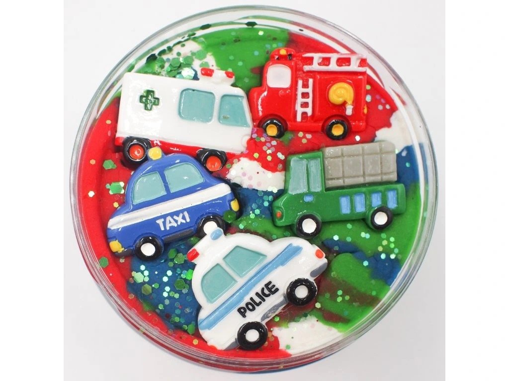 Mamolína – Záchranáři je čtyřbarevná jemná modelína s perleťovými třpytkami (250 g), která po smíchání vytvoří hnědo-šedou barvu připomínající silnici. V balení najdete i doplňky – například sanitku, auto hasičů či policie, které jsou připraveny pro hraní. Je měkoučká, voňavá, bezpečná (obsahuje lepek – jedlé suroviny) a děti ji mohou bez obav ochutnat.