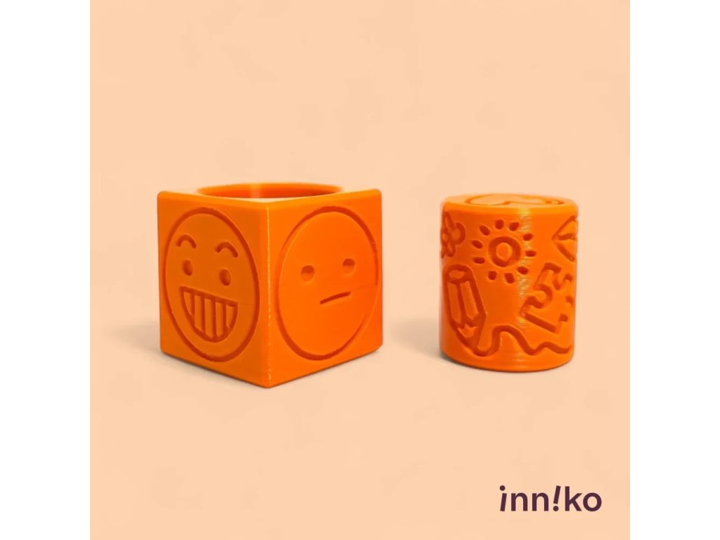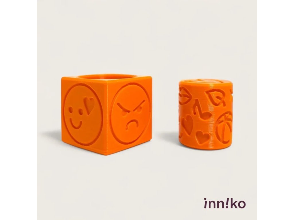 Objevte způsob, jak hravou formou přiblížit dětem svět emocí. Tato specialita z dílny Inniko vznikla ve spolupráci s českou organizací Tabasamu a spojuje kreativní zábavu s emočním učením. Kostka nese motivy smajlíků (nuda, nadšení, stud, vzdor, vděčnost), váleček zase piktogramy (srdíčko, list, slunce, hudba, ústa, tužka, puzzle), které dítě baví a pomáhají vyjádřit jednotlivé pocity