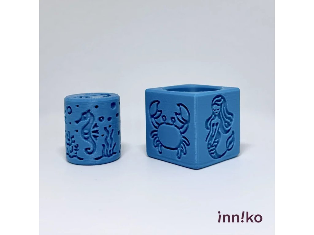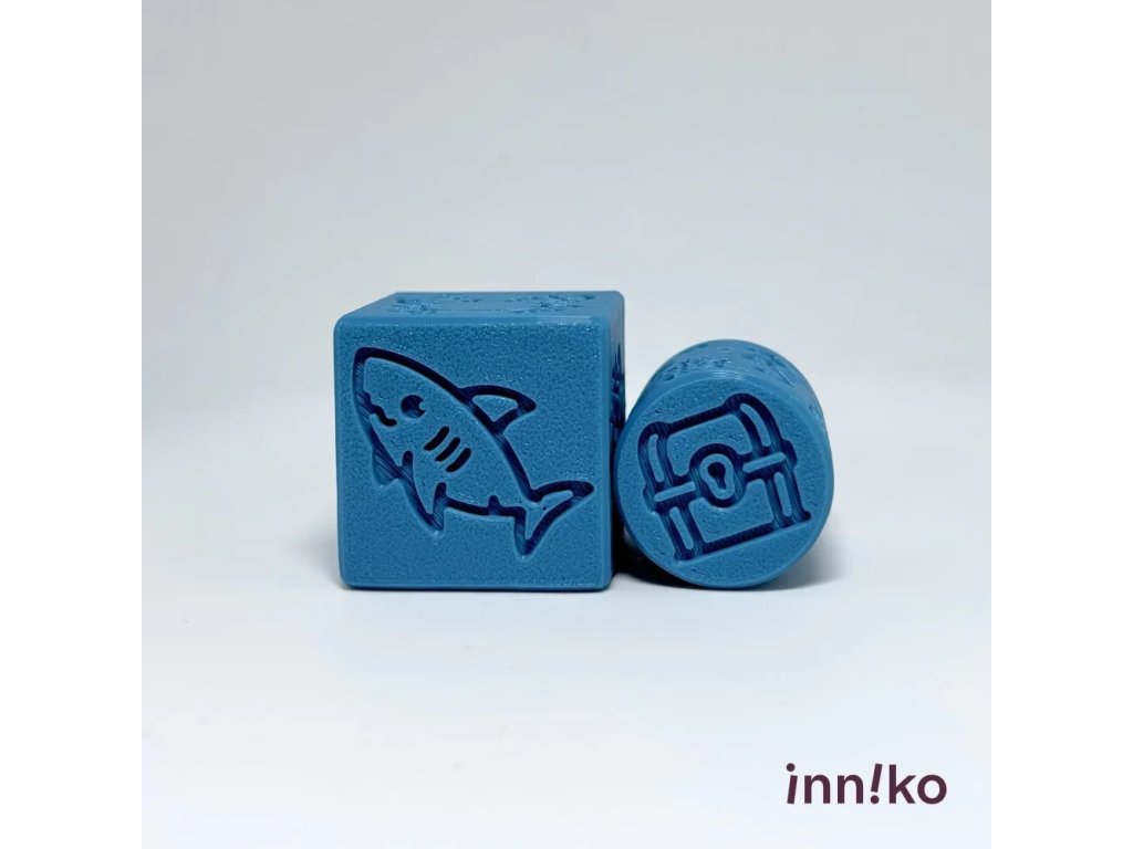 Přines dětem podmořské dobrodružství, které si mohou tvořit vlastnoručně! Na každé straně kostky najdou jiný motiv — třeba mořskou pannu, kraba, ostrov, žraloka či poklad. V interiéru kostky se skví váleček s motivy mořského koníka, ponorky, kotvy, korálů a rybiček. Stačí modelína nebo kineťáček, otiskni, přetáhni válečkem — a vznikne opravdový oceán. Hra přirozeně podporuje jemnou motoriku i kreativní vyprávění.