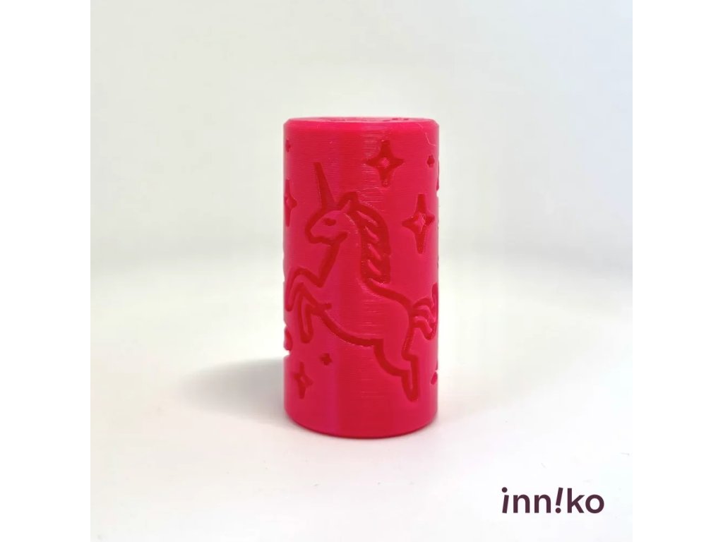 Vstupte do pohádkového světa s tímto roztomilým válečkem! Na jeho povrchu najdete tři motivy — jednorožce, čtyřlístek a pohádkovou krajinu. Stačí váleček přetáhnout přes měkkou modelínu či kinetický písek a hned se objeví kouzelný otisk. Tahle jednoduchá hračka podporuje jemnou motoriku, kreativitu a rozvíjí dětskou představivost.