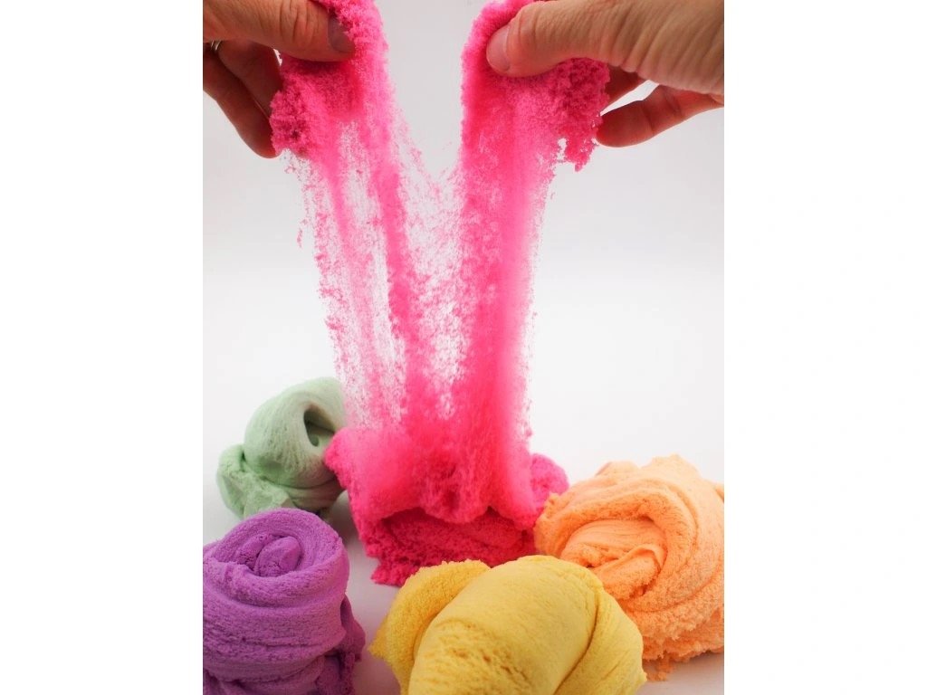 Je příjemný na dotek, nelepí se a nešpiní. Děti ho mohou mačkat, natahovat, rozdělovat a znovu spojovat – vždy se chová trochu jinak, a právě to z něj dělá jeden z nejoblíbenějších smyslových materiálů.